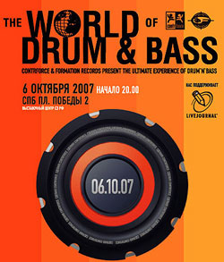 Осенним вечером 6 октября Московский проспект станет главной российской трассой электронной музыки. Стены бывшего НИИ на Площади Победы сотрясутся от басов и децибелов. Черно-белая громада угрюмого советского модернизма примет в себя энергию юной и прекрасной музыки, став, на одну ночь, самым модным местом Петербурга. Это The World of Drum&Bass, ключевой drum'n'bass фестиваль России, вновь сносит головы и заставляет танцевать до утра. Долой осеннюю хандру и не надо в этот день ехать на дачу. Звезды мировой сцены, чистый звук и поражающий воображение свет превратят Северную столицу в Мегаполис Drum'n'Bass.